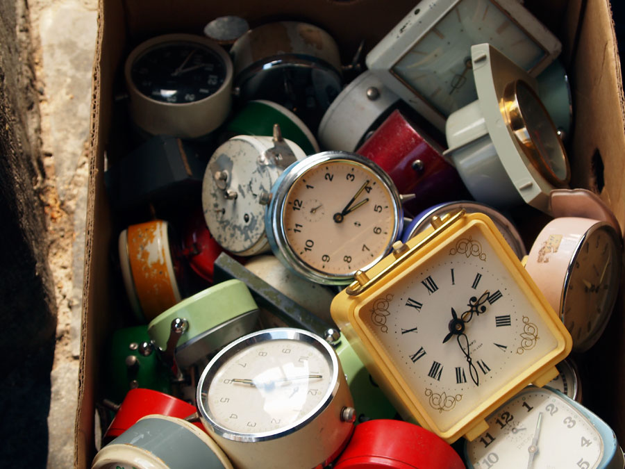 Heerlijk kleurrijk! Een rommeltje wekkers.